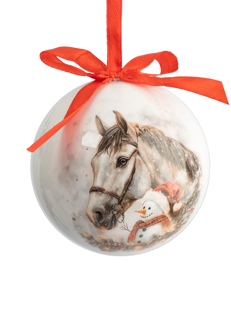 Игрушка елочная шар Конь и Снеговик 7 см. пенопласт. Anna Lafarg