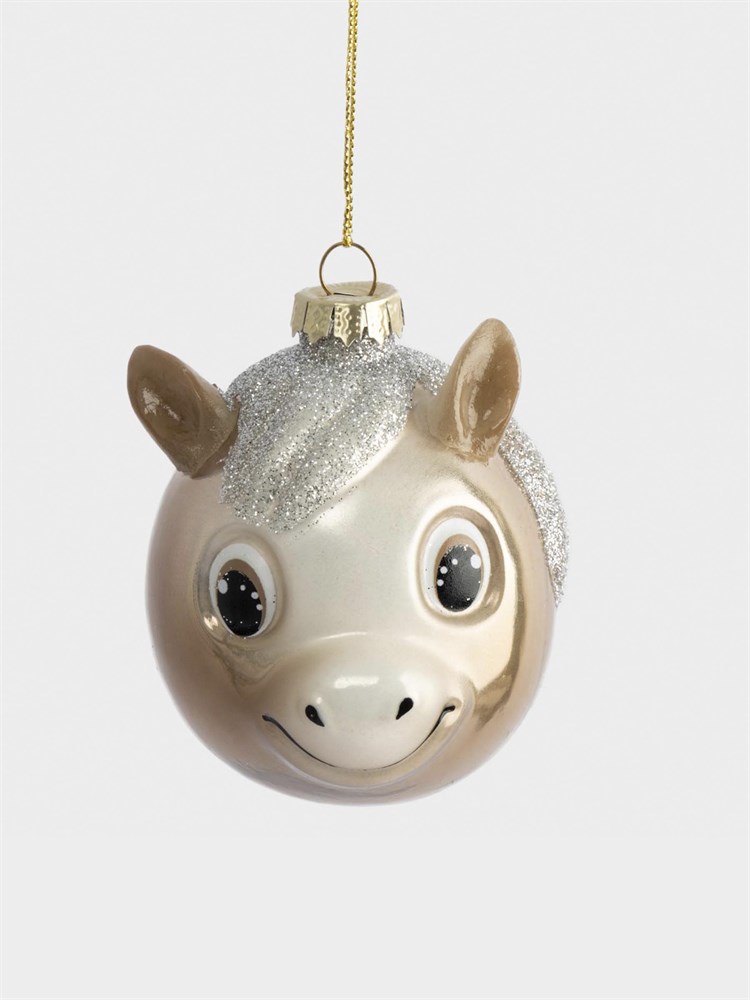 Игрушка елочная шар Лошадка с блестящей гривой 7x8 см. стеклянная. Anna Lafarg