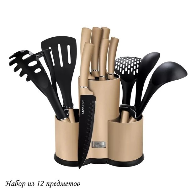 Набор ножей и кухонных принадлежностей на подставке 12 пр. (бежевый). Lenardi