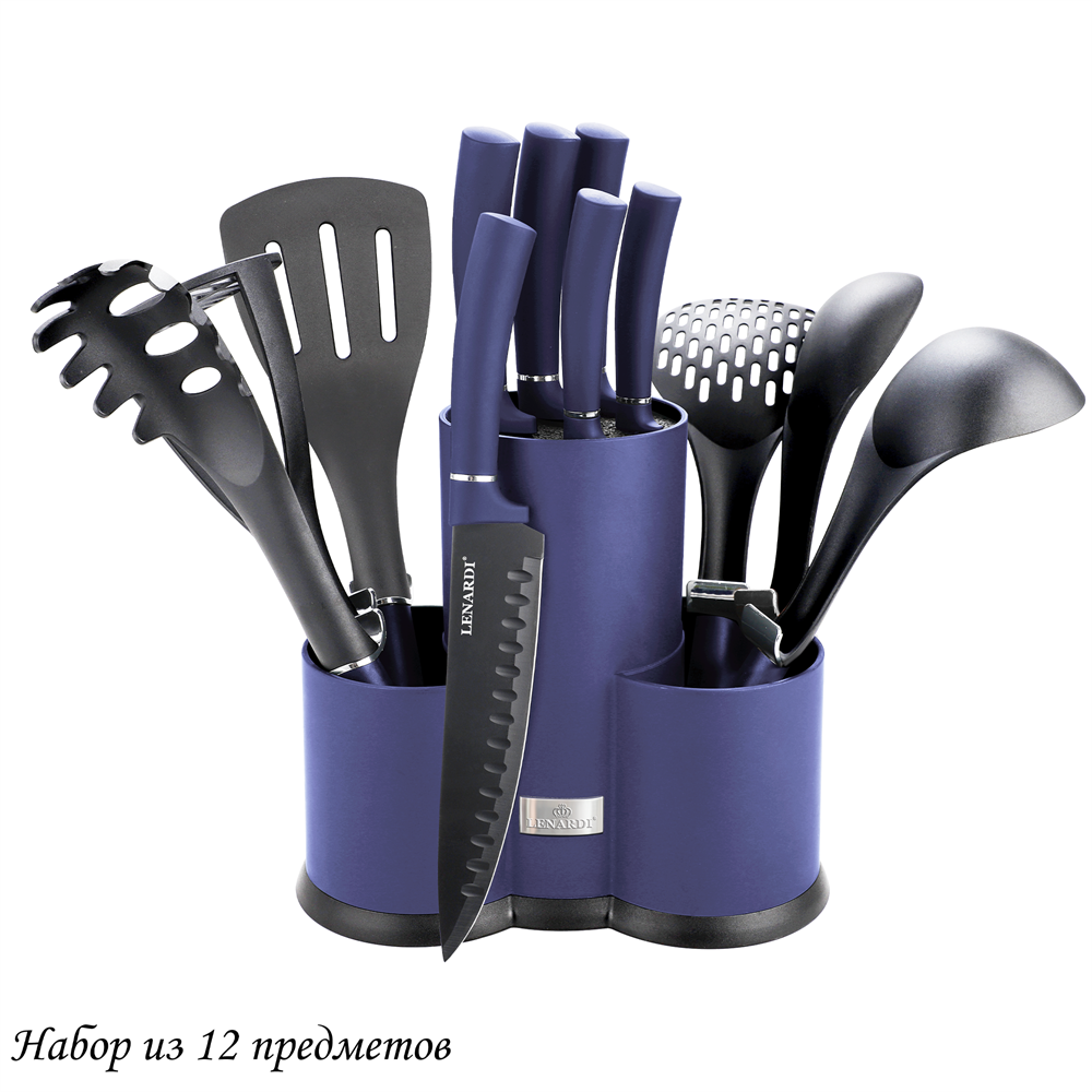 Набор ножей и кухонных принадлежностей на подставке 12 пр. (синий). Lenardi