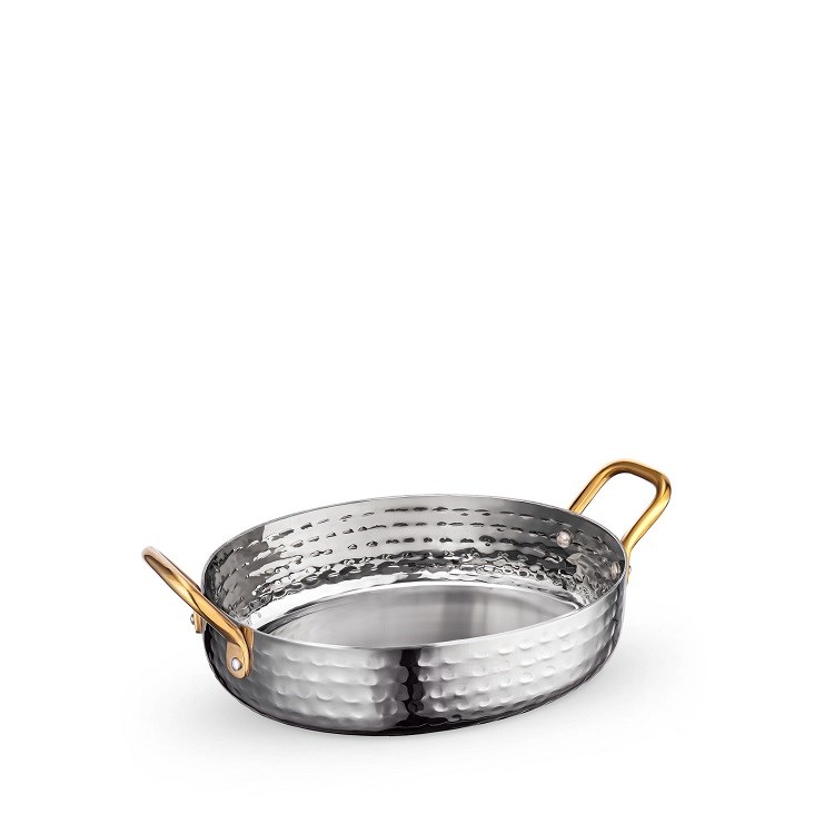Сковорода для подачи овальная Silver 16х13х3,8 см. (2 ручки). Wilmax