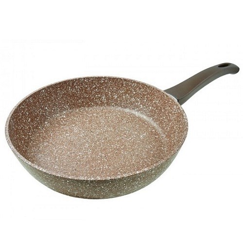 Сковорода выполнена из высококачественного алюминия с толстым дном, обеспечивающим равномерный нагрев и долговечность. Антипригарное мраморное покрытие позволяет готовить без масла, легко очищается даже после жирных блюд.