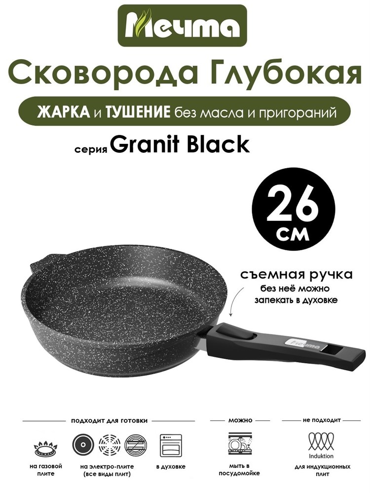 Сковорода Granit Black 26 см. съемная ручка. Мечта