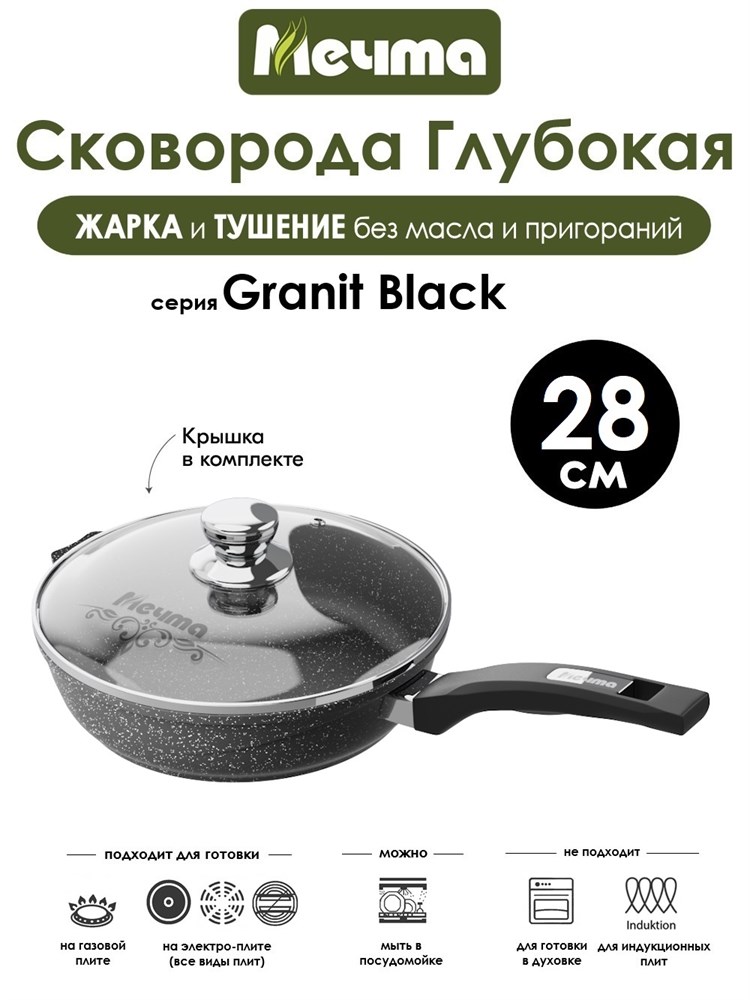 Сковорода Granit Black 28 см. с крышкой. Мечта