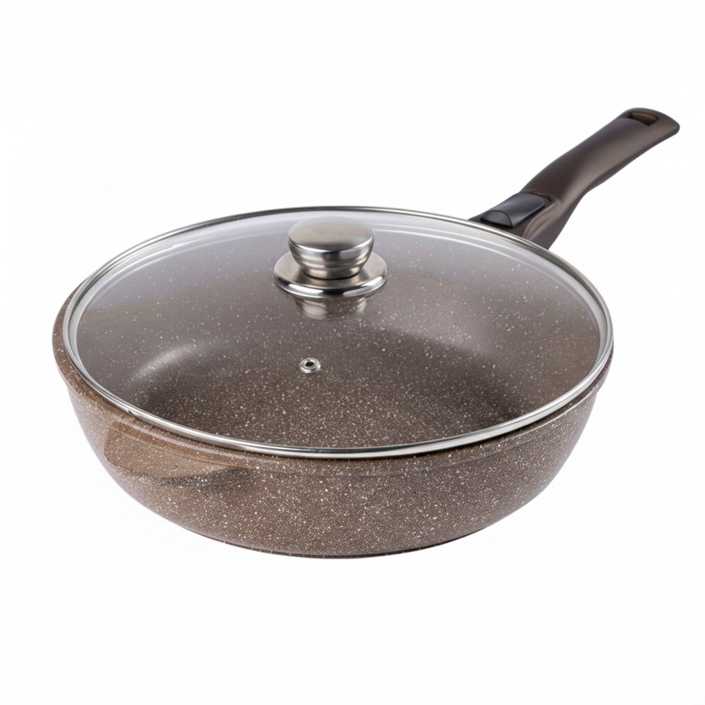 Сотейник Алтай 24 см. с крышкой, съемная ручка soft-touch (покрытие Мраморное). Гардарика