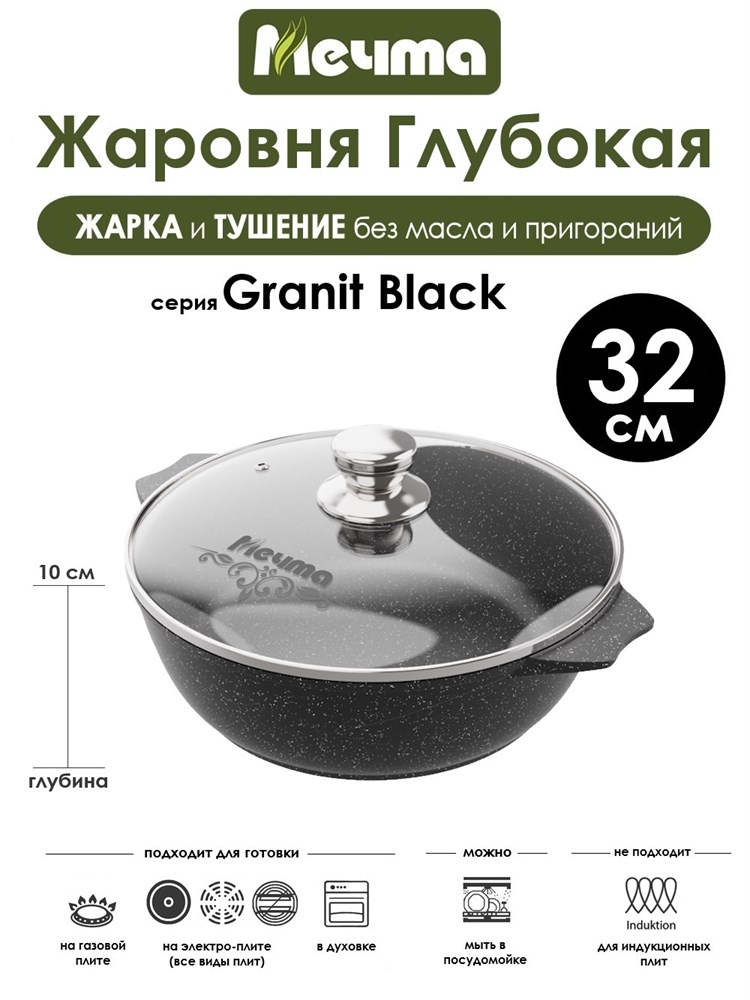 Жаровня Granit Black 6 л. (32 см). Мечта