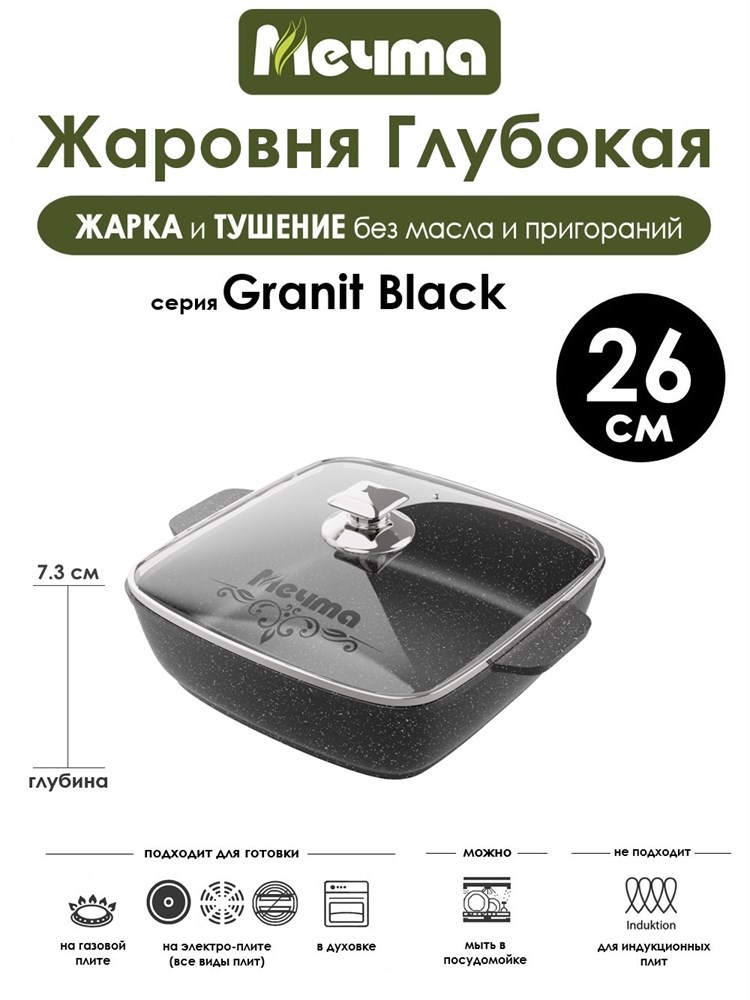 Жаровня квадратная Granit Black 26х26 см. Мечта